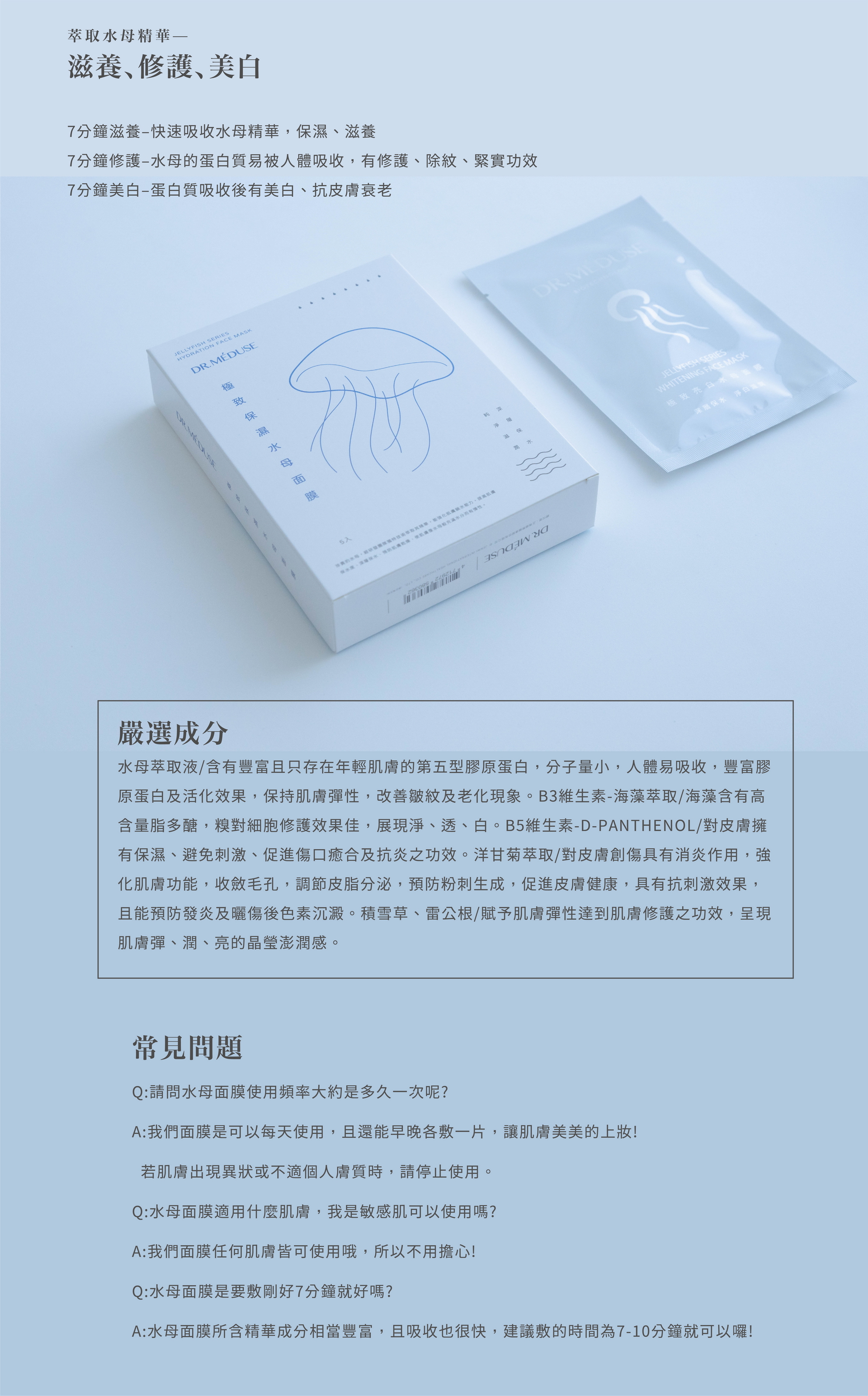˙ 7分鐘的滋養–快速吸收水母精華,保濕、滋養